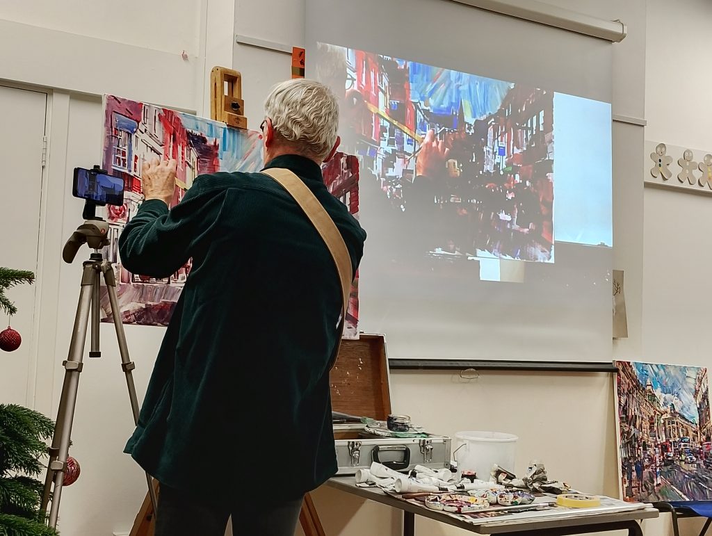 Previous Demonstrations Street Scene in Acrylics Portrait in Oils Watercolour flowers Figure in pastel Woodland Scene in Watercolour In the style of Tom Thomson Fused Glass Coloured Pencil